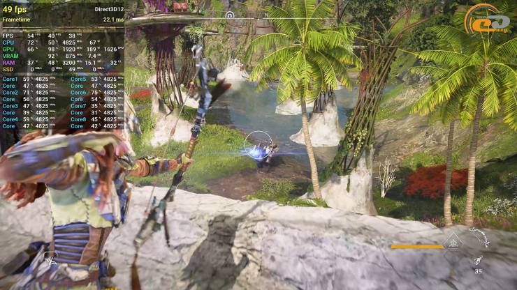 Досліджувати далекі землі і боротися з гігантськими машинами можна з максимальним задоволенням від соковитості картинки в Horizon Forbidden West на дуже високих налаштуваннях та використовувати додаткове згладжування DLAA, і при цьому мати коло 50-ти стабільних FPS. Якщо здасться замало – є куди знижувати налаштування.