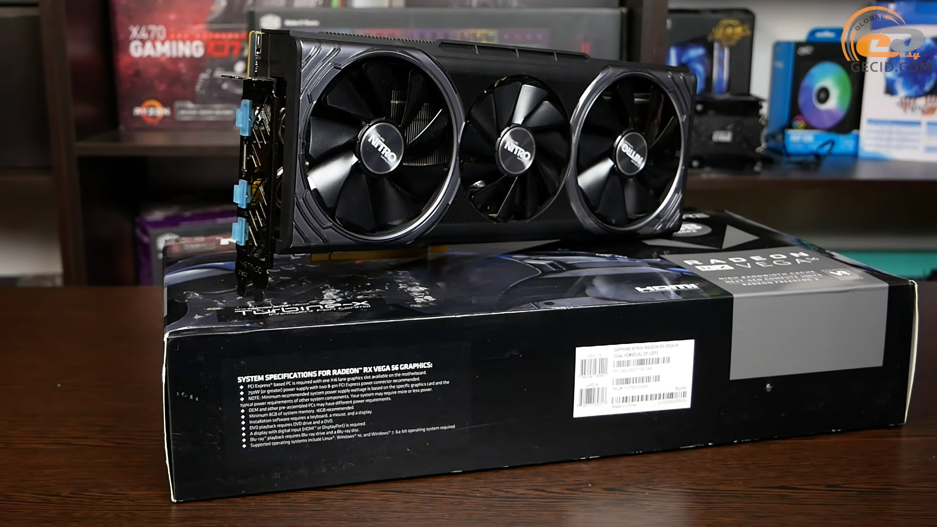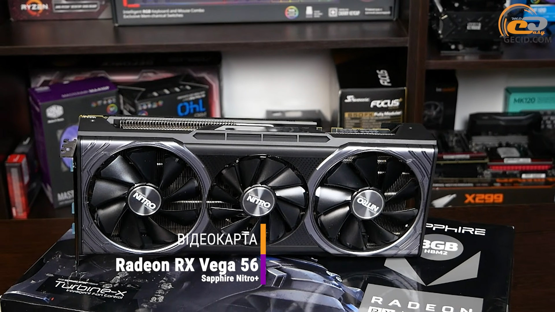Тестування ж ми проводитимемо на прикладі Sapphire NITRO+ Radeon RX Vega 56 — однієї з найбільш масивних і технічно досконалих версій цієї відеокарти. Вона одразу привертає увагу своїми вражаючими габаритами: довжина становить 310 мм, а сама карта займає майже три слоти розширення.