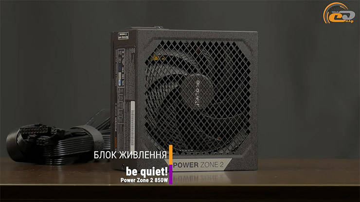 Живлення всієї системи забезпечує блок be quiet! Power Zone 2 850W — якісне й тихе джерело з висококласною елементною базою та стабільними лініями. А сертифікація 80 PLUS Platinum підтверджує його енергоефективність. Він підтримує сучасні стандарти навантаження, має ефективну систему охолодження та повністю модульні кабелі, що суттєво спрощує складання, а надійність підкреслюється 10-річною гарантією.