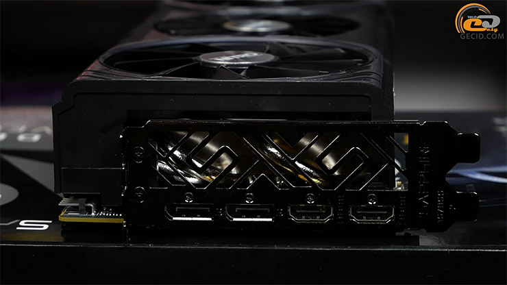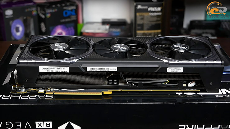 Система охолодження тут справді флагманського рівня. Вона складається з трьох великих осьових вентиляторів, масивного алюмінієвого радіатора та89 які безпосередньо контактують з GPU. Окремі радіатори та термопрокладки передбачені також для відеопам’яті HBM2 і силових елементів підсистеми живлення, що позитивно впливає на температурний режим і стабільність роботи.