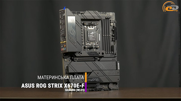 Працює цей процесор в надійній і ще досить актуальній материнський платі ASUS ROG STRIX X670E-F GAMING (WI-FI).