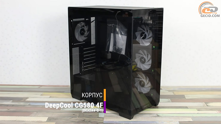 Усі ж компоненти розміщені в просторому і стильному корпусі DeepCool CG580 4F. Його панорамні скляні панелі дозволяють оцінити красу системи, а продумане двокамерне компонування робить кабель-менеджмент максимально акуратним. У комплекті вже йдуть чотири ARGB-вентилятори, створюючи якісну циркуляцію повітря.