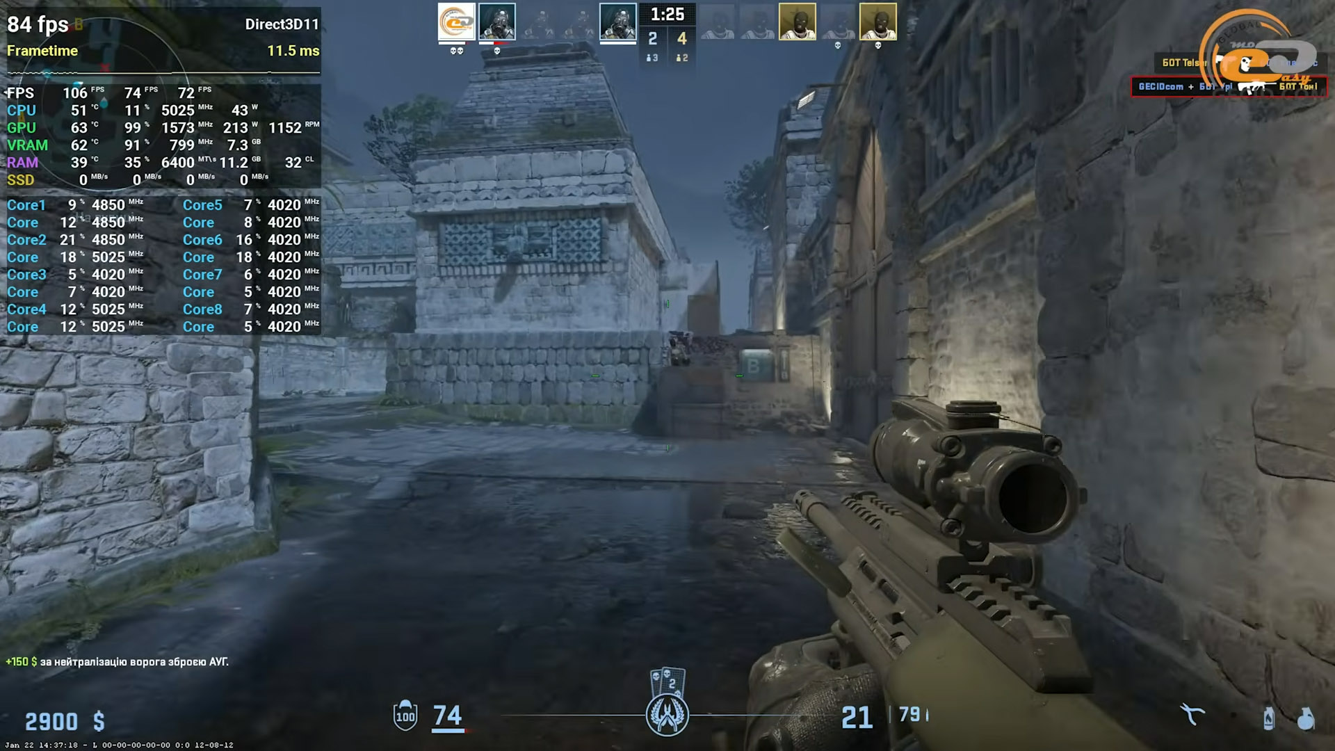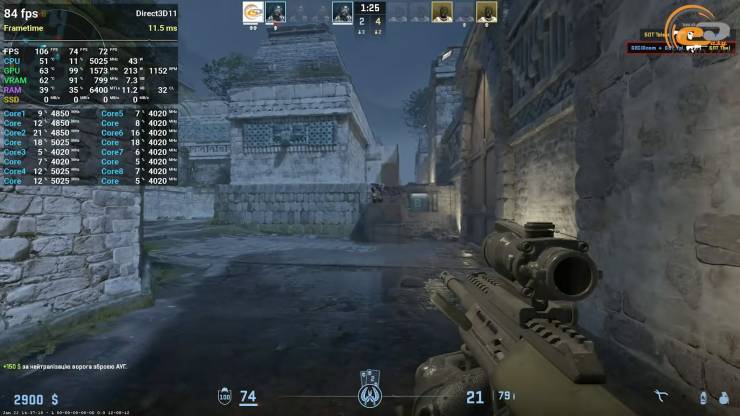 А от Counter Strike 2 вже вдається витягнути на «ура» навіть при «не кіберспортивних» Very High налаштуваннях. Тут ніяких нарікань не виникає, тому грати можна із повним задоволенням від процесу отримання перемоги через швидкі «раші» або розмірену тактику.