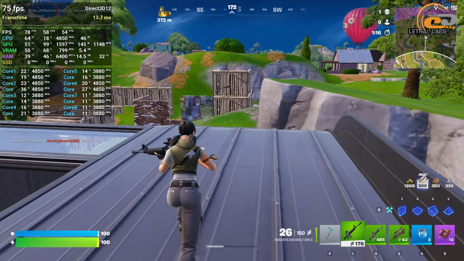 На низькому пресеті в Fortnite з увімкненим TSRM у режимі якості гра не виглядає чимось неймовірним, але це і не вимагається від змагального проєкту. Проте картинка залишається чистою та з достатнім освітленням, а продуктивність у більшості моментів тримається на високому рівні. Можливо тільки під час дуже важких файтів в останніх кругах зони продуктивність впаде нижче комфортного порогу, тоді доведеться ввімкнути режим «Продуктивність».