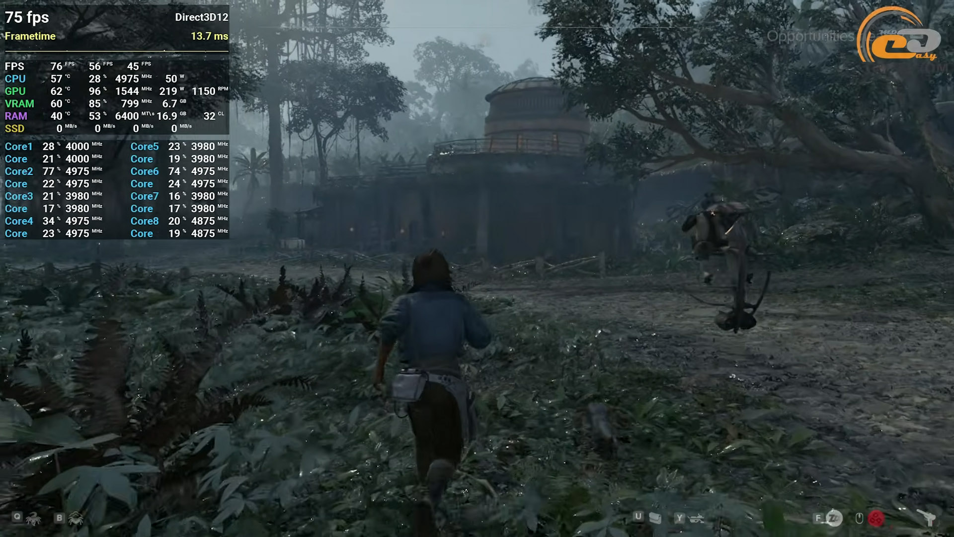 Побігати від заражених в новій частині Dying Light: The Beast відеокарта надає змогу лише на середніх налаштуваннях і стає її максимумом. При цьому втручання якісного апскейлеру також конче потрібне. Але, приреченим геймплей назвати не можна, бо він залишається доволі плавним та приємним. Хіба що під час швидкого полювання чи у більш важких моментах ближче до фіналу хмари можуть трохи згуститися.