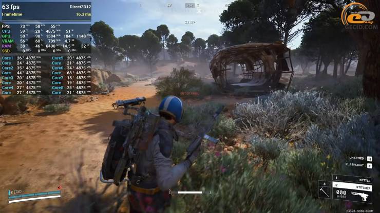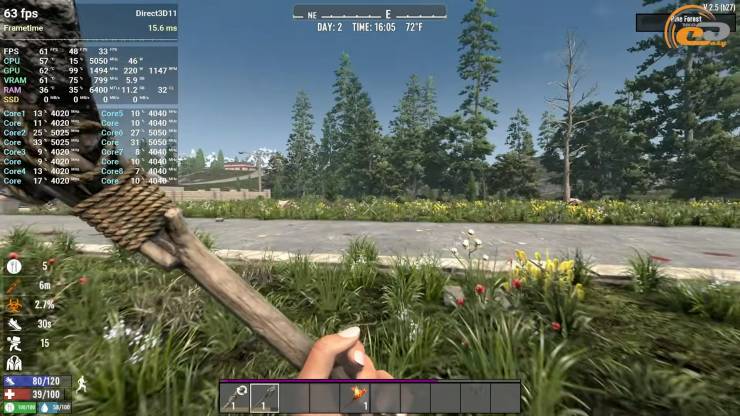Першою проходила тестування 7 Days to Die, яка пішла майже ідеально на ультра пресеті графіки з додатковим FSR 3 згладжуванням. А невеличкі посмикування в густій рослинності здебільшого відчувалися лише завдяки моніторингу.