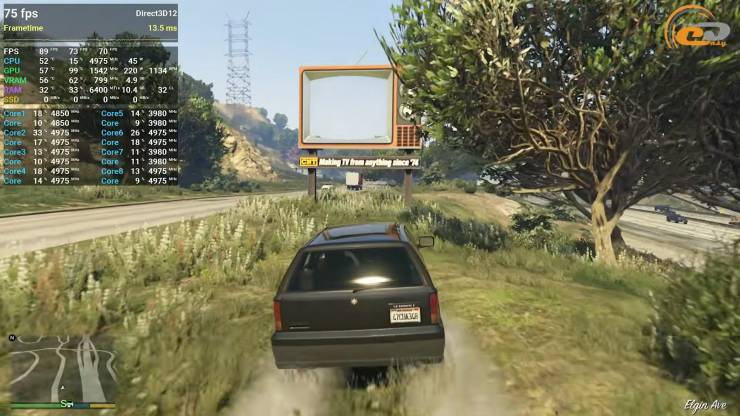 Через повну відсутність підтримки трасування променів від оновленої версії GTA V залишається тільки назва, бо грати можна лише на пресеті Very High і без RT, але, радує, що продуктивно. Таким чином картинка оновлюється стабільно коло 90 разів за секунду у місті, а в зонах густої рослинності не падає сильно нижче 70-ти.