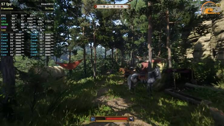 А от у схожу за рушієм Kingdom Come: Deliverance II можна грати на тих самих високих налаштуваннях, але все ж таки доведеться додати FSR 3 в якісному режимі, який, на жаль, усе одно не врятує від просідань нижче 60 FPS в таборах з великою кількістю NPC. Проте це точно не робить процес неприємним і тому гра продовжує манити до проходження.